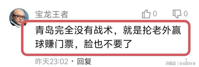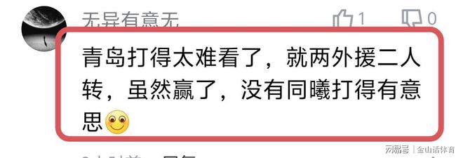 “全场比赛国内球员运动战总共进两,全给外援抡了,怪不得一到国际赛场就趴窝。”;“建议这种球队,直接降级算了,纯靠外援,玩什么?”;“这样搞有意思吗???我们看CBA看的是国内球员,要看老外看nba就好了,看什么cba”;“青岛打得太难看了,就两外援二人转,虽然赢了,没有同曦打得有意思。”……