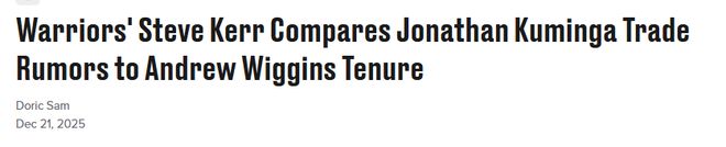 “球员们都希望得到坦诚相待,他们不喜欢被敷衍。你得让他们清楚球队的真实情况,但传递这些消息时,必须带着同理心。这种处境真的很煎熬,库明加家里还有两个年幼的女儿,而且他已经为勇士效力了五个赛季。”科尔说道,“维金斯上赛季就处于一模一样的境地,交易截止日前后他的第三个孩子即将降生,而他的名字却一直出现在流言里。其实我们每年都会经历这样的事情,每逢交易截止日,总会有一两名球员成为流言的焦点。”