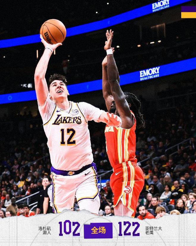 北京时间11月9日,NBA常规赛湖人客场对阵老鹰,其中老鹰是背靠背第二场。面对缺少多位主力的残阵老鹰,湖人在场上开启疯狂打铁失误模式,持续被压制逐步被拉开25+落后差距,最终湖人102-122爆冷惨负老鹰结束5连胜。布朗尼18分钟得到9分,创造赛季新高成为唯一亮点。
